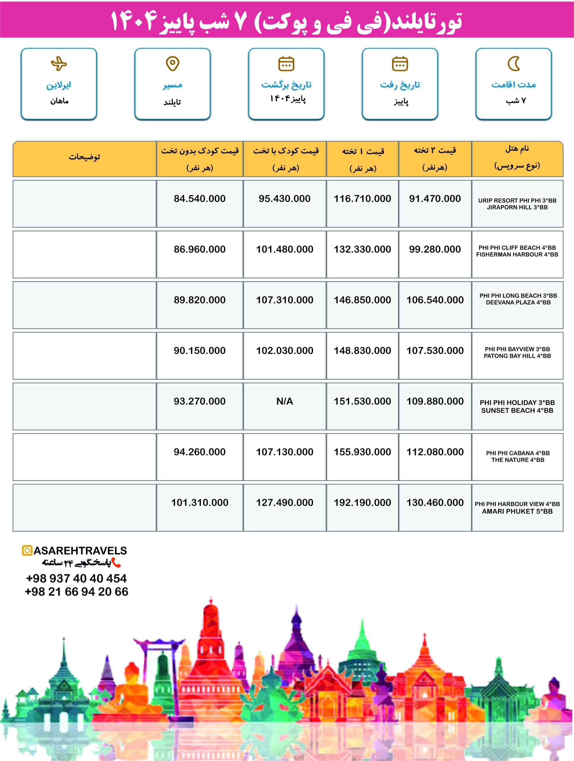 بررسی عوامل موثر بر قیمت تور پوکت فی فی